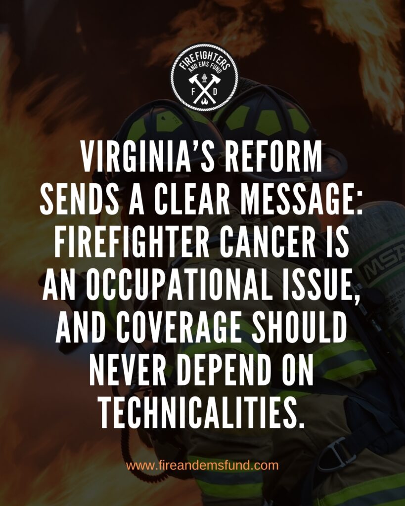 Yet Virginia’s achievement is not the end of the story. Continued reform remains essential to protect first responders nationwide. The goal, as Myers articulated, is simple but profound: “If you hear the word ‘cancer,’ it should be covered.”